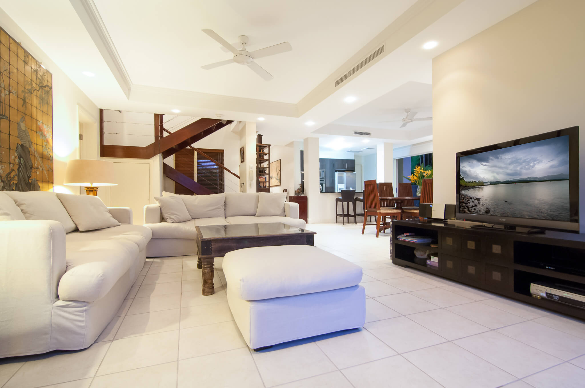 The outdoor living area with barbeque showcases the essence of the Tropical North Queensland lifestyle. A balcony sitting space is the perfect place to enjoy your morning coffee or a refreshing afternoon cheese and wine time. The villa also has laundry facilities, wardrobes in all bedrooms and ample storage. From the moment you step through the entry courtyard and into the foyer you will feel at home. This is the ideal private retreat for travellers seeking a truly relaxing break with family or a group of friends, with the added benefit of being located in a resort with world class facilities.