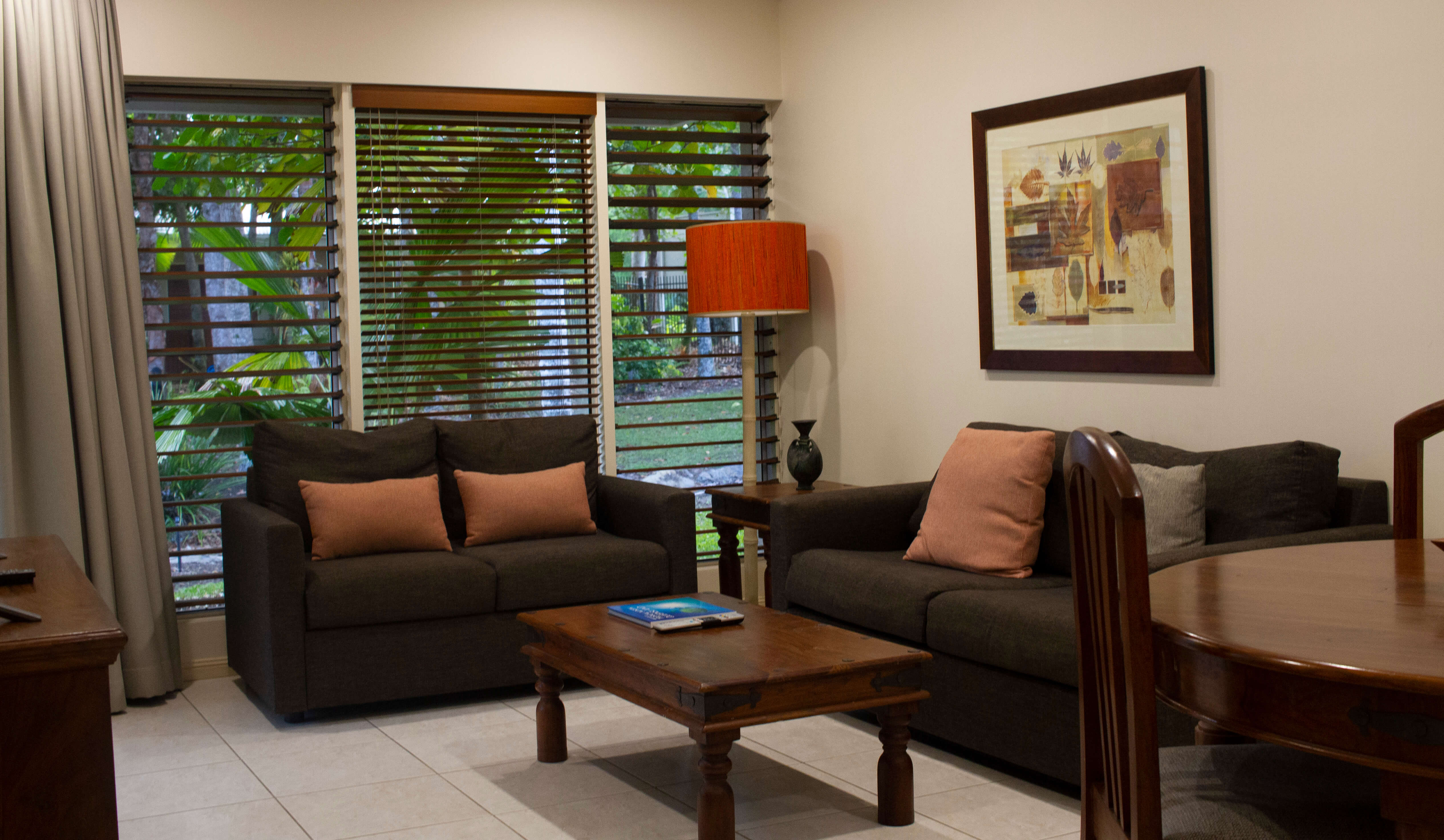 Links Hotel Room views include lush tropical gardens and the lagoon style swimming pool. Available with a king or two single beds. Separate bath, shower & toilet, and own balcony area. Features Nespresso Coffee Machine, air conditioning and ceiling fans, TV, DVD & Foxtel, mini bar fridge, iron and ironing board and hairdryer. No Cooking Facilities. Free WIFI. Rooms serviced after 5 days.